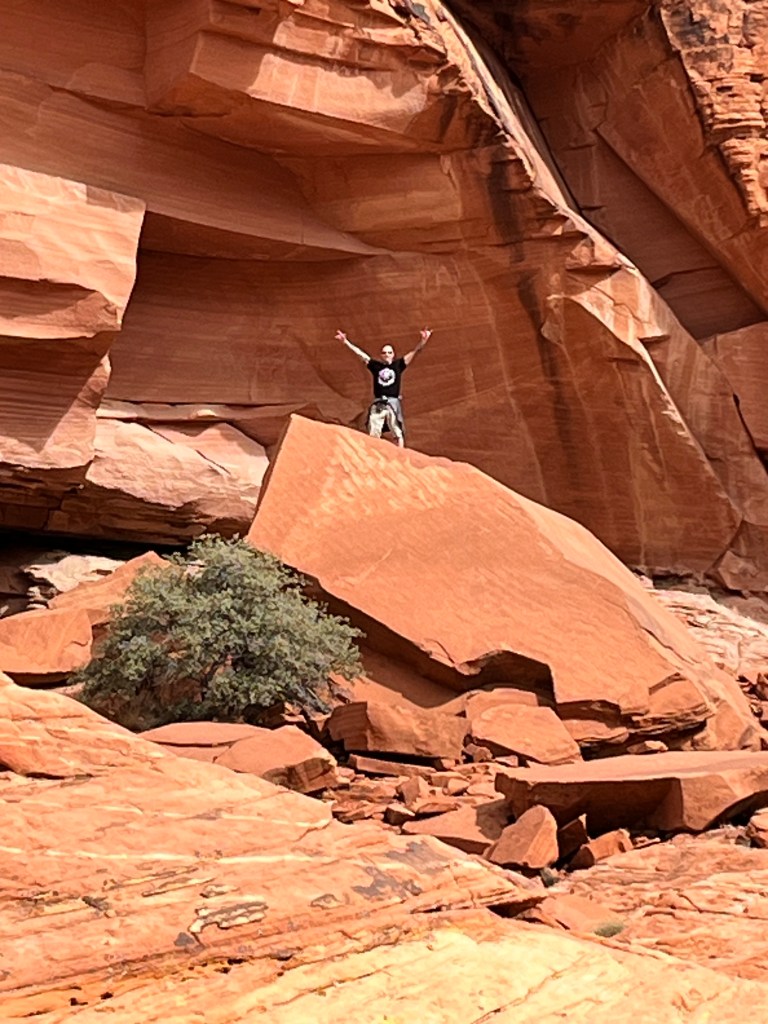 We pretty much planned to hike the whole week we were out there. On our first full day there, we traveled to Red Rock Canyon. There is a part of the road where suddenly, the mountains emerge almost from out of nowhere. I told him “Just wait and you won’t believe your eyes.”